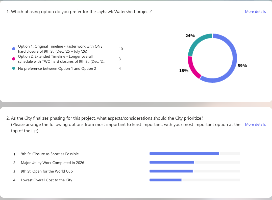 Next, the project team will share survey results with Lawrence city commissioners, who will need to approve a change order, which will also include any potential phasing or schedule changes.